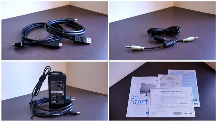 HDMI線*1,Display線*1,Audio線*1,電源線與電源供應器*1,說明光碟與保證書等。