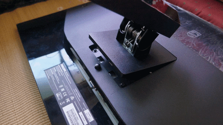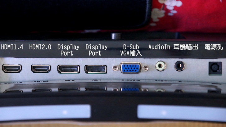 至於背面呢,最重要的就是輸出入孔位啦。這台Philips 328M6FJRMB 31.5吋曲面顯示器的輸出入孔位依序是HDMI1.4,HDMI2.0,兩個Display Port,最傳統的D-Sub VGA輸出,Audio輸入,耳機輸出與電源孔。應該符合絕大多數人的需求。