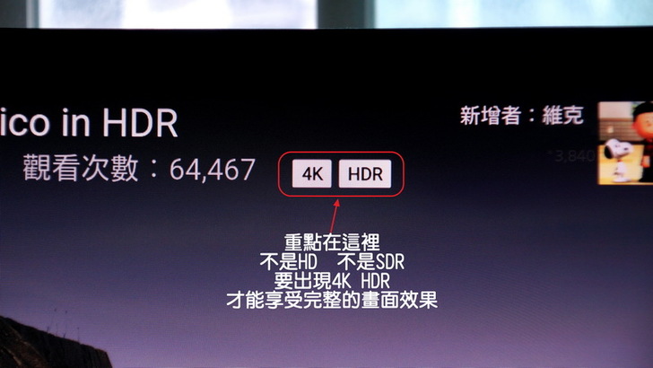 重點來了,要看到畫面出現4K HDR的字眼,才是真正有4K HDR的效果