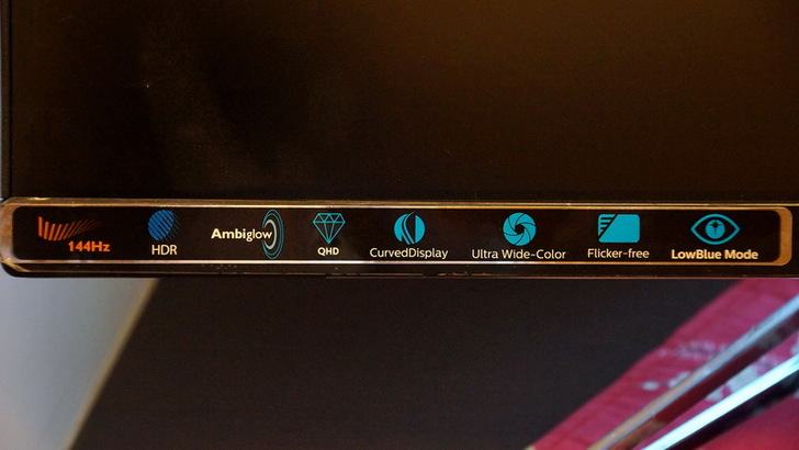 螢幕正面左下方是廣告,廠商把這台顯示器的特點都寫在這了。