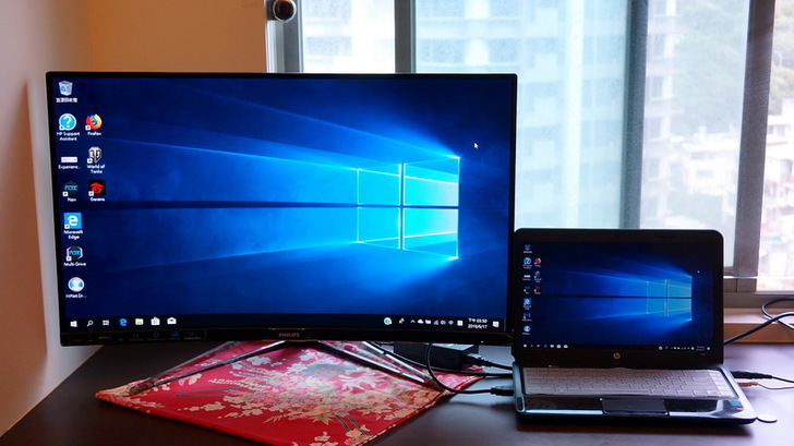 但是螢幕還是太小啊,螢幕小沒關係,廠商也借了我一台超級無敵霹靂大的電腦顯示器,其實這個才是重點啊,有了大螢幕無論你要看片追劇,爽度大大不同,就算玩電腦遊戲,大螢幕加上整組的電競遊戲設備,感覺就跟在網咖差不多了(不過泡麵熱水請自備)。