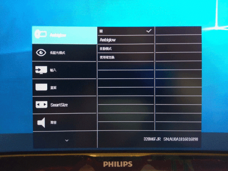 Philips 328M6FJRMB 31.5吋曲面顯示器內建的OSD功能強大,讓我們來看一下,這要使用我之前提到的十字鍵。