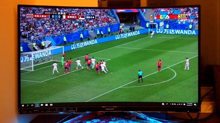 現在正逢4年1度的世界盃足球賽,雖然我就是人們口中的一日足球迷,但有了這麼棒的顯示器,當然要好好的觀賞比賽啦,但很可惜的,愛爾達提供的訊號品質並沒有達到預期的4K,但至少比我在原本的電腦顯示器觀賞來的更有氣勢,戴上耳機之後,加油聲好像把我包圍了,冰島加油!!牙醫可以當教練,導演可以當守門員,這世界已經沒有什麼不可能的!!