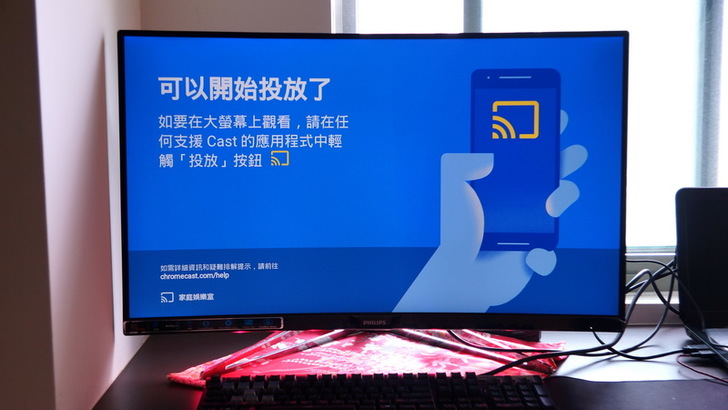 之前提到KKTV支援多種播放方式,因為我想多試試Google Chromecast ultra,那我們就從手機透過Google Chromecast ultra串流到Philips 328M6FJRMB 31.5吋曲面顯示器吧。