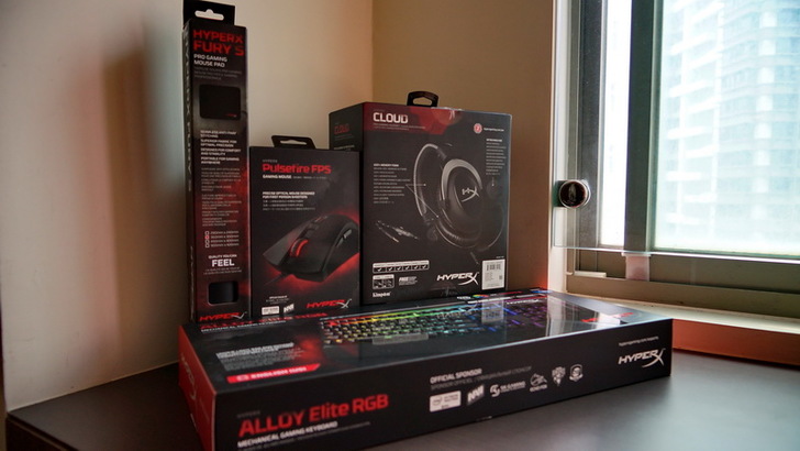本次借到了HyperX的Alloy Elite RGB背光多媒體電競鍵盤,Pulsefire FPS職業級高準度 FPS 滑鼠,FURY S專業電競滑鼠墊與Cloud電競耳機。