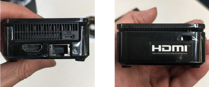 機身背面(下左圖)-Microo USB電源孔、Gigabit Lan Port與HDMI Port。