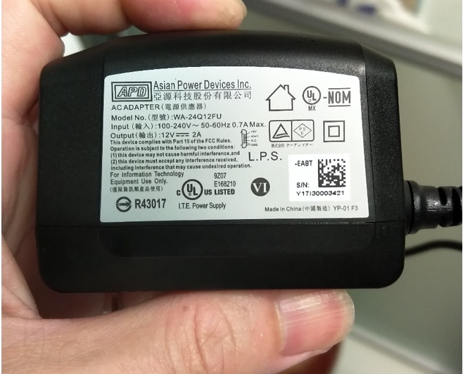 電源供應器,輸出電力為12V/2A,由亞源科技製造,主機的電源孔為Micro USB, 很容易讓人想拿