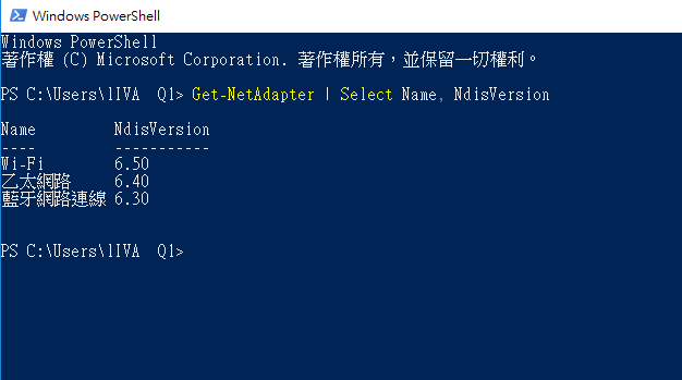 條件2.執行powershell輸入指令,t-NetAdapter | Select Name, NdisVersion