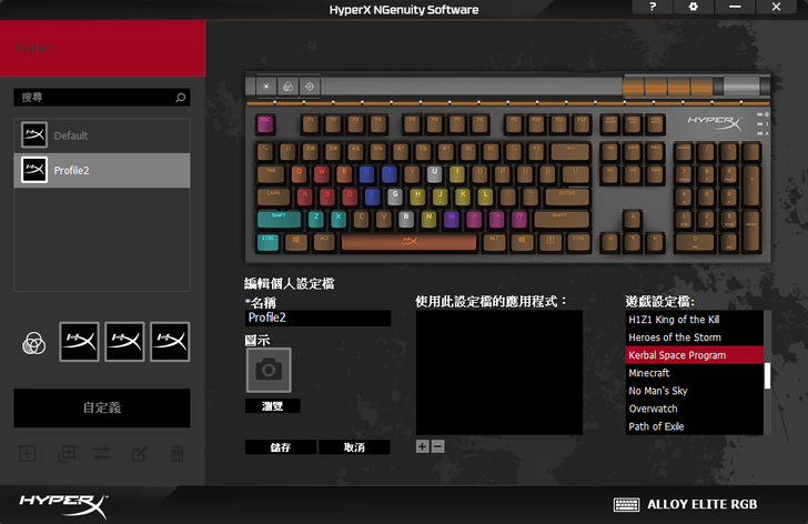 除了基本設定燈號顯示,還有額外軟體可支援鍵盤針對遊戲顯示不同燈號-HyperX NGenuity