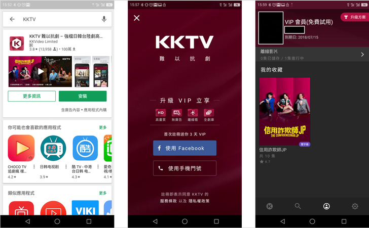 手機搜尋KKTV,安裝也可以在手機上看影片,操作起來還滿順暢簡易。