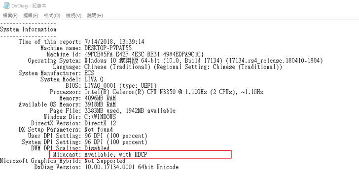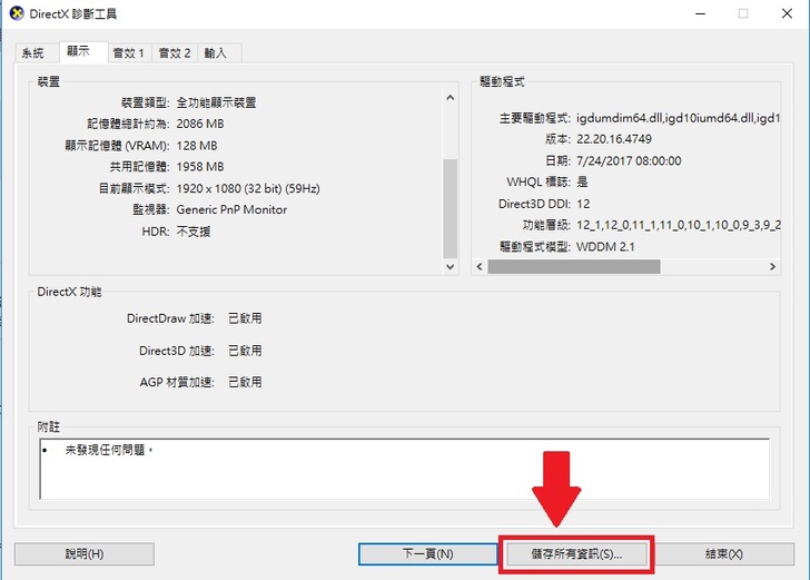 儲成的文字檔DxDiag使用記事本打開確認,只要符合下列紅框文字就沒問題