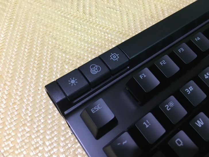 左上方為燈校亮度控制(四段可調),燈效控制(也可透過軟體修改燈校),遊戲模式