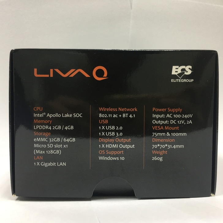 ]ECS LIVA Q外盒上蓋,一台不到7000塊台幣竟然還搭載了WINDOWS 10 家庭版作業系統