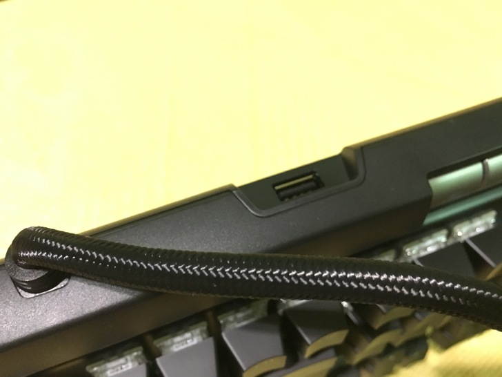 鍵盤有兩條USB連接線,一條主要為鍵盤功能,一條為USB擴充功能,在鍵盤右前方有一個USB 2.0擴充孔