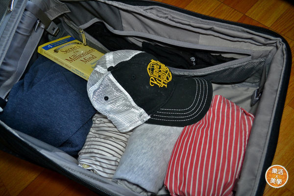 內部空間做了最大化的設計,可以同時放衣物及配件,側邊還有小袋子可以放內褲襪子,對於一週以內的旅遊使用度已經很足夠,一週以上的話亦可在當地洗衣重覆穿這幾套,以我的經驗來說,至少帶三套內衣褲就差不多了。
