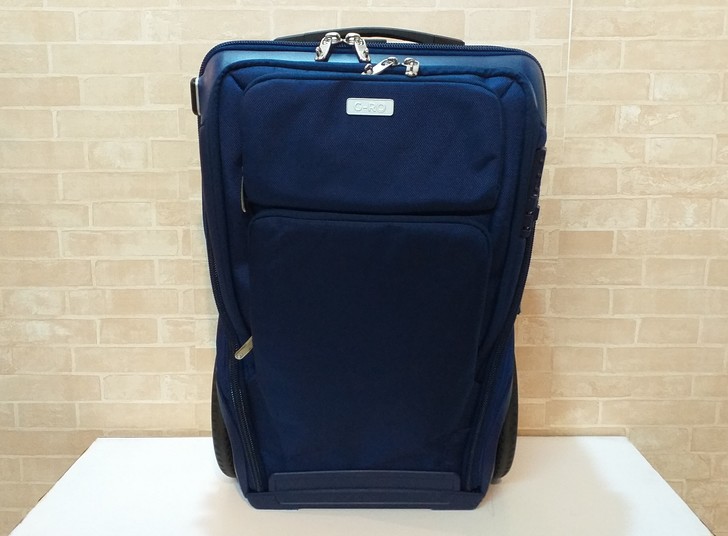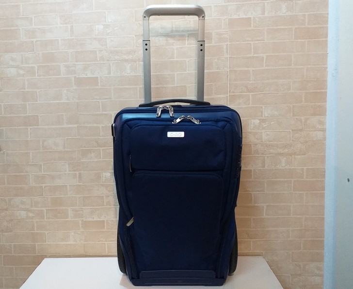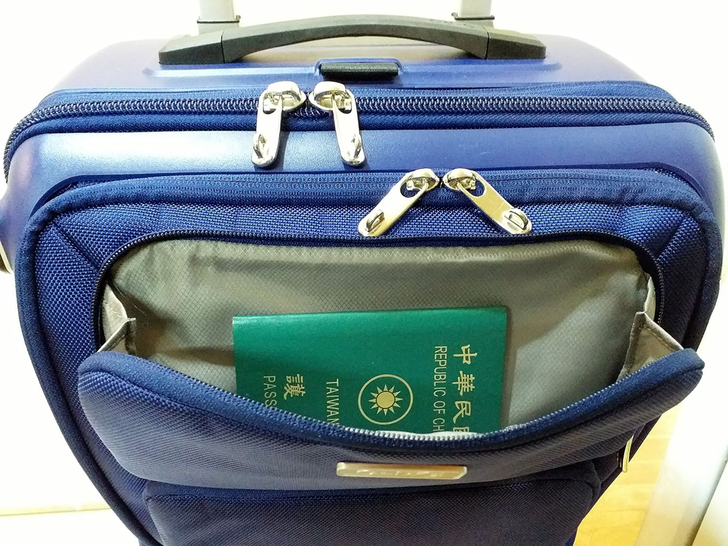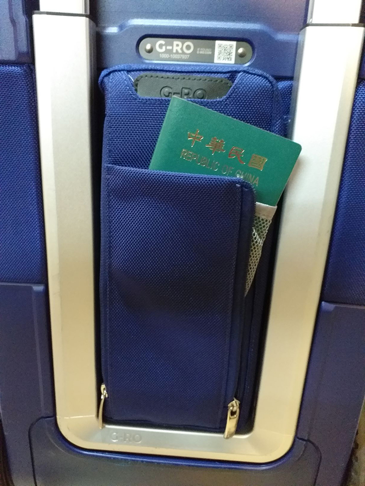 取出布套,就是頗扎實的G-RO 登機箱;藍色的外觀我很喜歡,正面還有很多收納的區域,這部分待會再介紹。