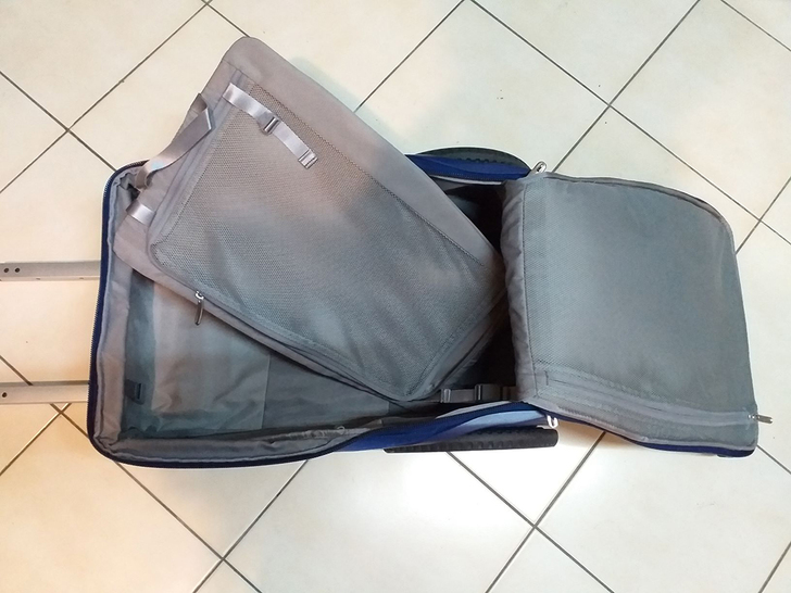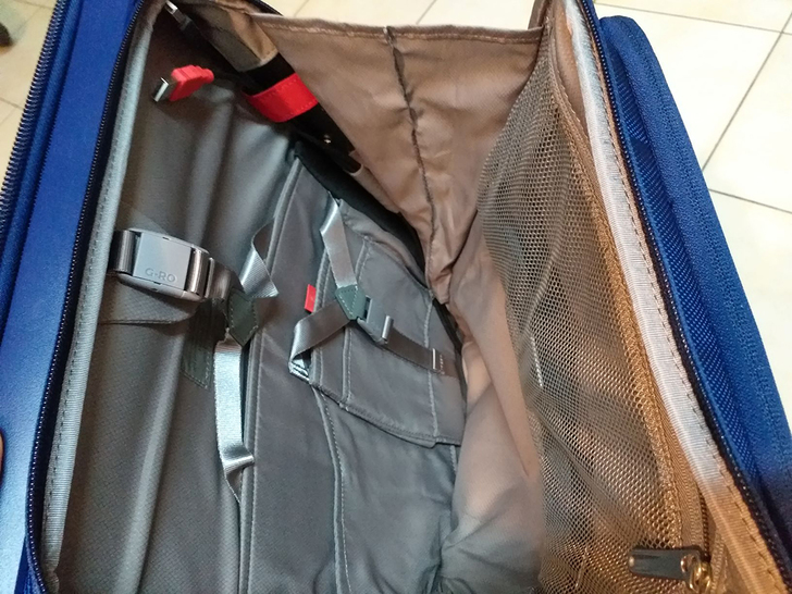 廠商說為了避免將裝置作內縮設計而佔去不少空間,G-RO針對內部空間進行最大化處理,可以放進一週所需衣物。行李箱的所有口袋也都作了易收納設計,可以輕鬆放置或拿取想要的東西,另外還附有可拆卸式分層設計,掛進行李箱之後,可以輕鬆分隔衣物或物品,讓使用者不用擔心特別衣物被壓皺。