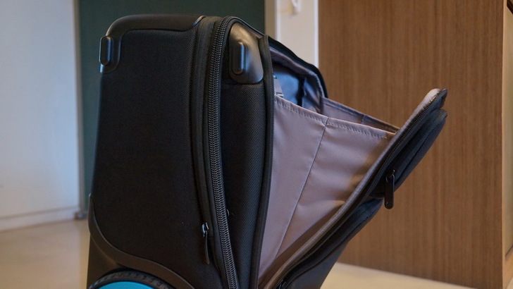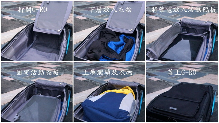 G-RO雖然只是一個登機箱,體積不大,但是我發現他在輪子大之外還有一個優點,那就是收納空間多,光是正面就有兩層的收納空間,容易收納,也容易取用。