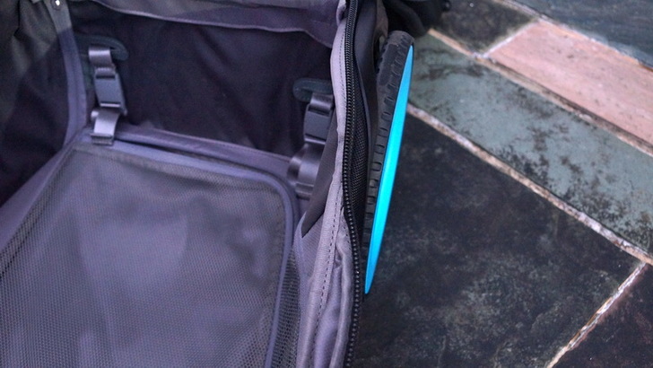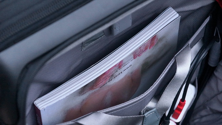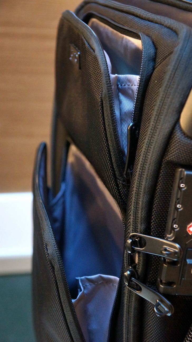 登機箱內部那個活動式隔板也是出乎意料的好用,如果商務人士需要帶筆記型電腦出門,放在活動式隔板內,上下用自己的衣物作為緩衝,能有效的保護筆記型電腦。就算不需要帶筆記型電腦出門,襯衫放在隔板內也比較不會皺。如果完全不想使用那個隔板,也能很輕易的取下。