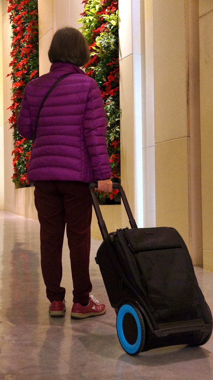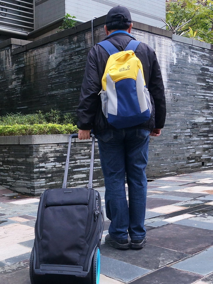 最後老媽嫌他的登機箱輪子太小不好拉,我就跟老媽交換登機箱,讓老媽來拉G-RO登機箱。老媽覺得比較大輪子比較好拉耶。