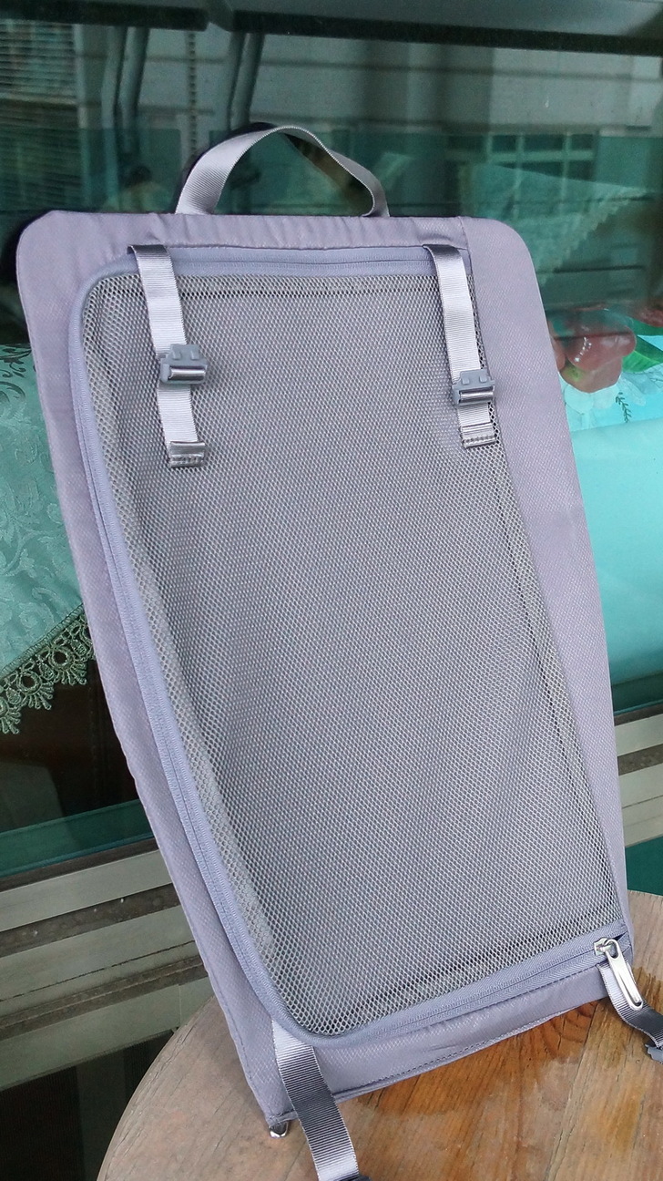 因為下面放衣服,上面也放衣服,筆記型電腦放在中間可以藉由衣服提供足夠的保護力,避免筆記型電腦受損。如果你沒有帶筆記型電腦出門,這個活動式隔板你也可以有效利用,例如襯衫放在這個隔板之內避免弄皺了。或者用這個活動式隔板來區分兩個區域,一區是穿過的髒衣服,一區是還沒穿過的乾淨衣物。