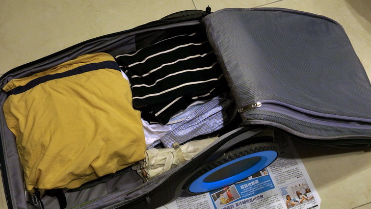 G-RO登機箱容量很實在,設計時充分利用航空公司的規定,盡可能的讓容量最大化,同時也不會因為大輪子的設計吃掉登機箱的容量。應付5天的旅程綽綽有餘。此外,G-RO登機箱前後各種的分類隔間眾多,易於使用者收納小東西,取用時也很方便。