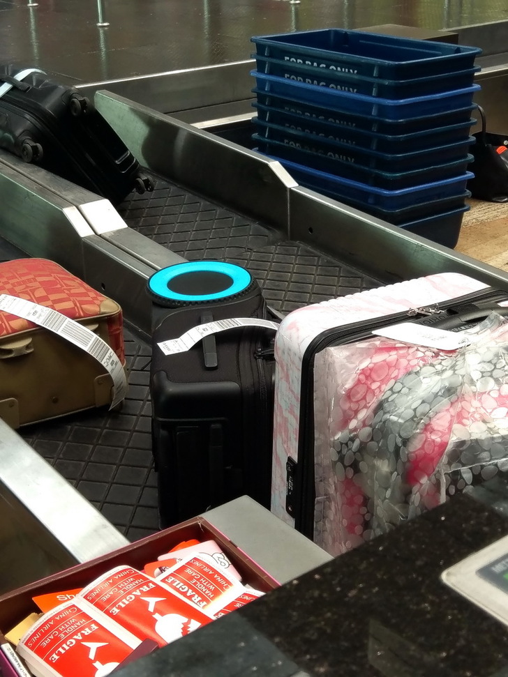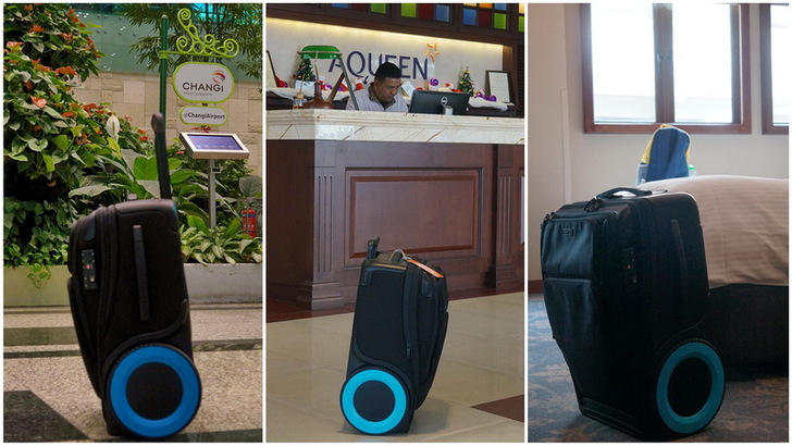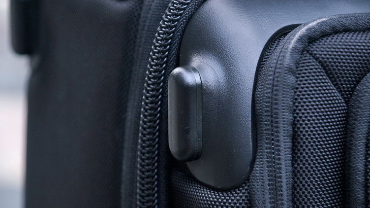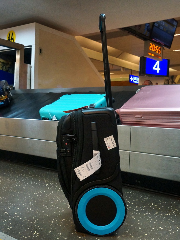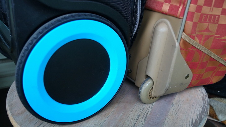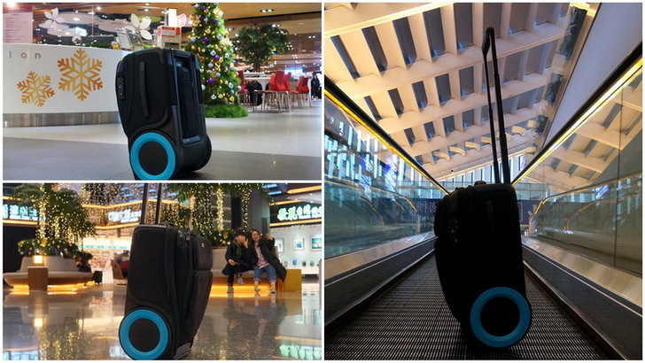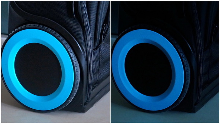 超大的藍色輪子,識別度非常高,老遠就知道自己的登機箱是哪一個,此外大輪子對於各種地面都能克服,就算是拖著登機箱爬台階,也比傳統行李箱輕鬆不少。而且大輪子轉動的時候很安靜,不會有硬塑膠輪與地面摩擦的聲音。此外,在正常使用狀態下,輪子有10年的保固啊!!