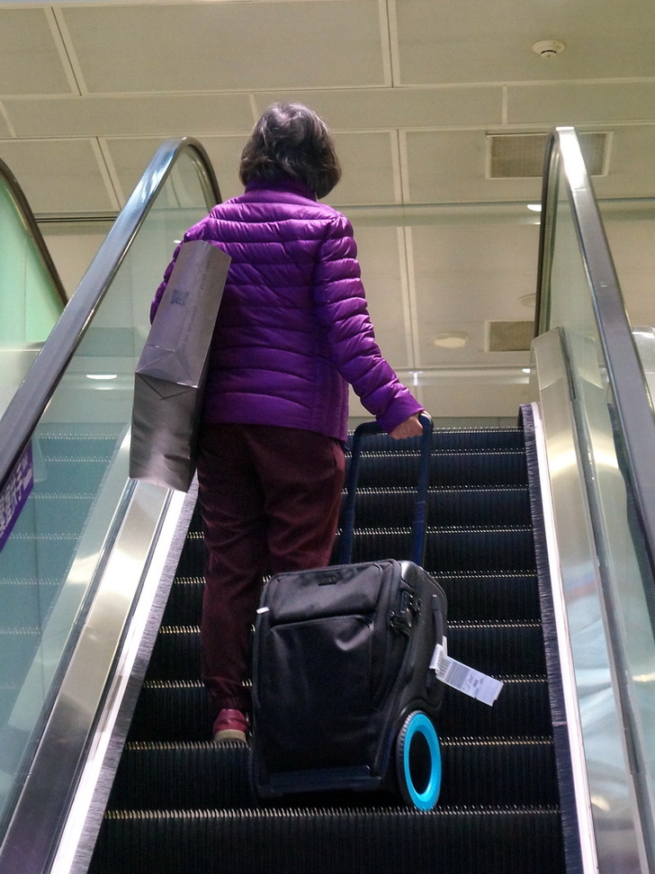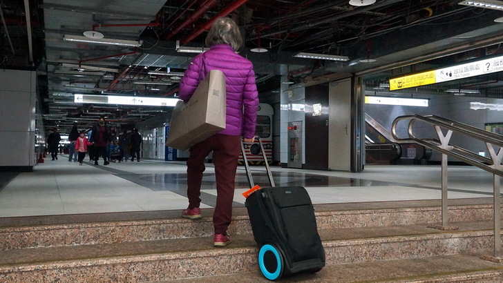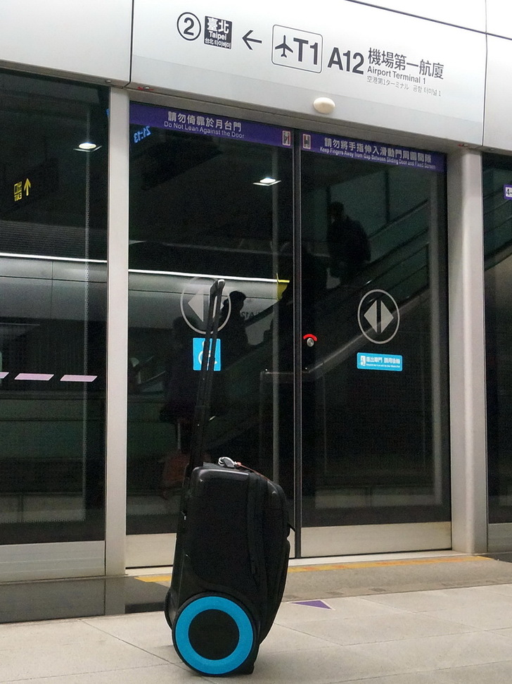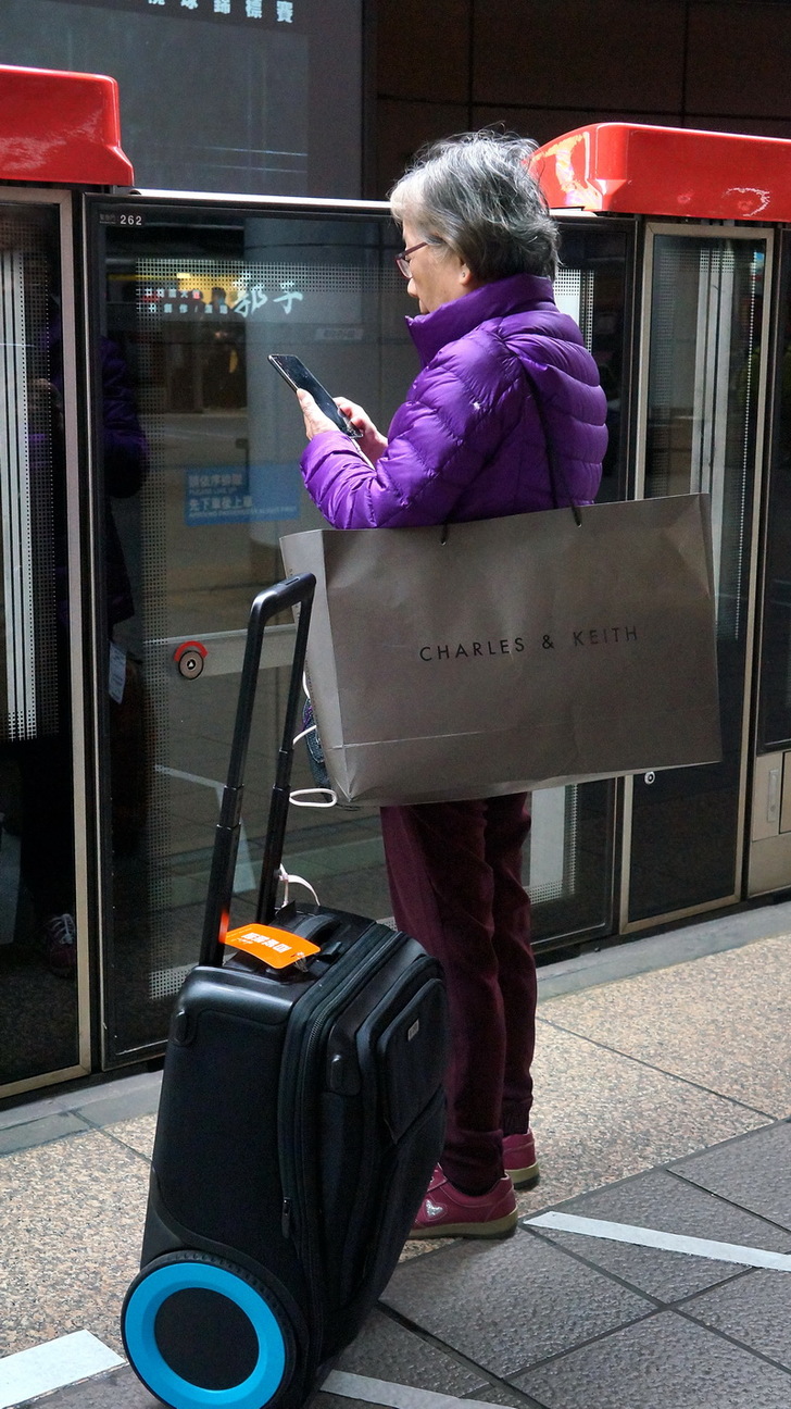 最後一個關卡卻發生在機場捷運A1站,那就是從機場捷運A1站到台北捷運台北車站,中間要搭手扶梯,要走一段不算短的路,還要爬幾個台階。老媽左手帶著兩個新加坡名產小CK包包,右手拉著G-RO登機箱,毫不費力的過了這個考驗,我只能說老媽威武。