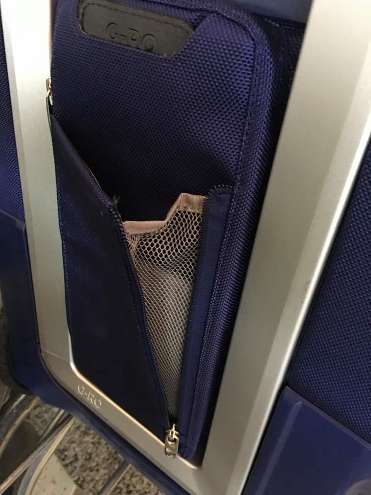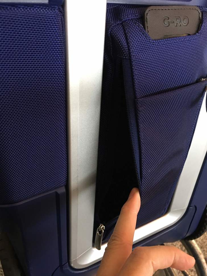 ▼G-RO登機箱正面第一層有上下二個拉鏈袋 、第二層大的拉鏈袋空間