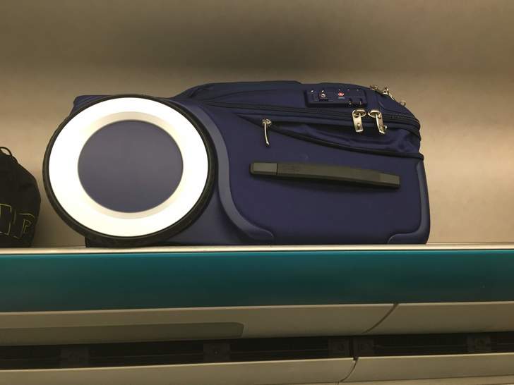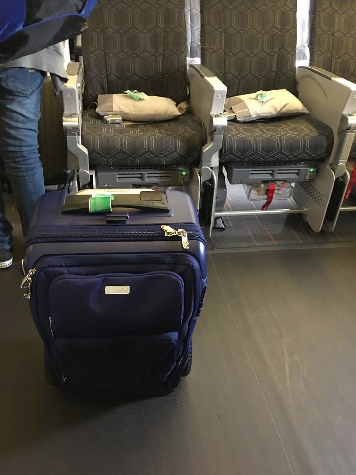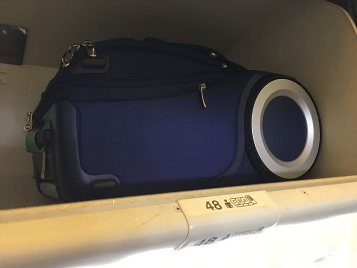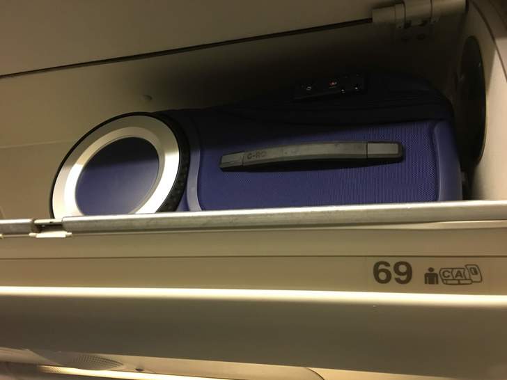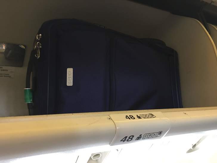▼G-RO登機箱放在飛機座位上方的行李櫃