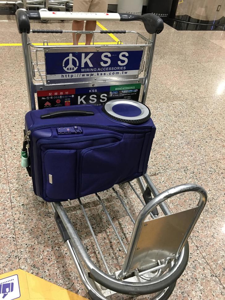 ▼G-RO登機箱放在手推車等待我的拖運行李