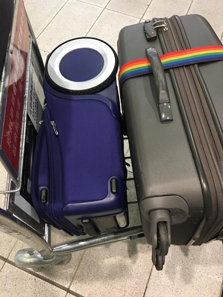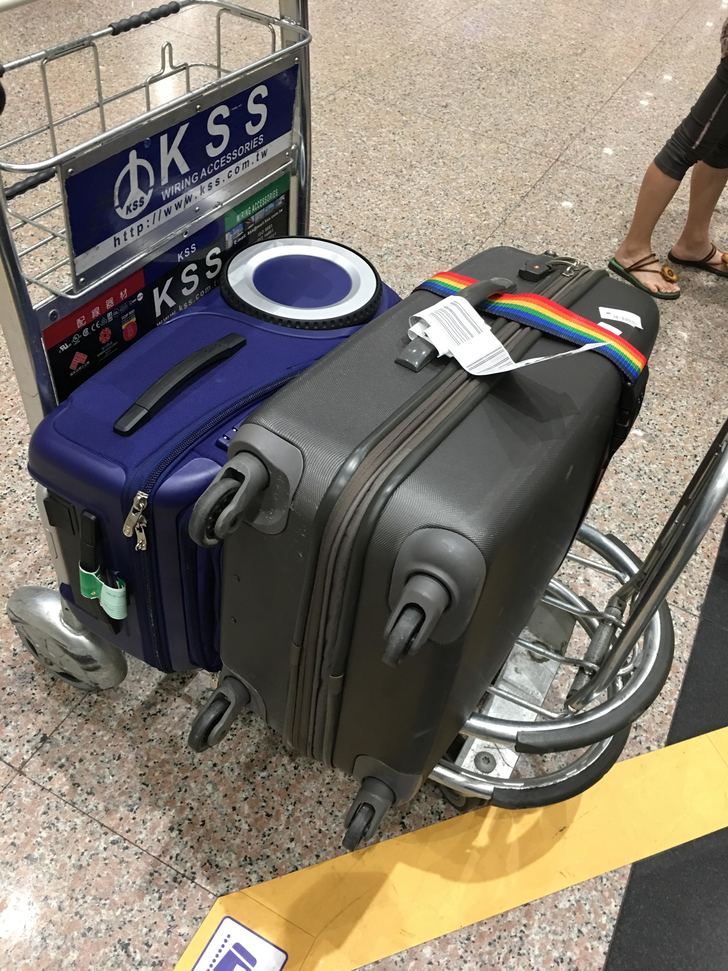 ▼G-RO登機箱從澳洲回程因行李太多太重故用拖運的