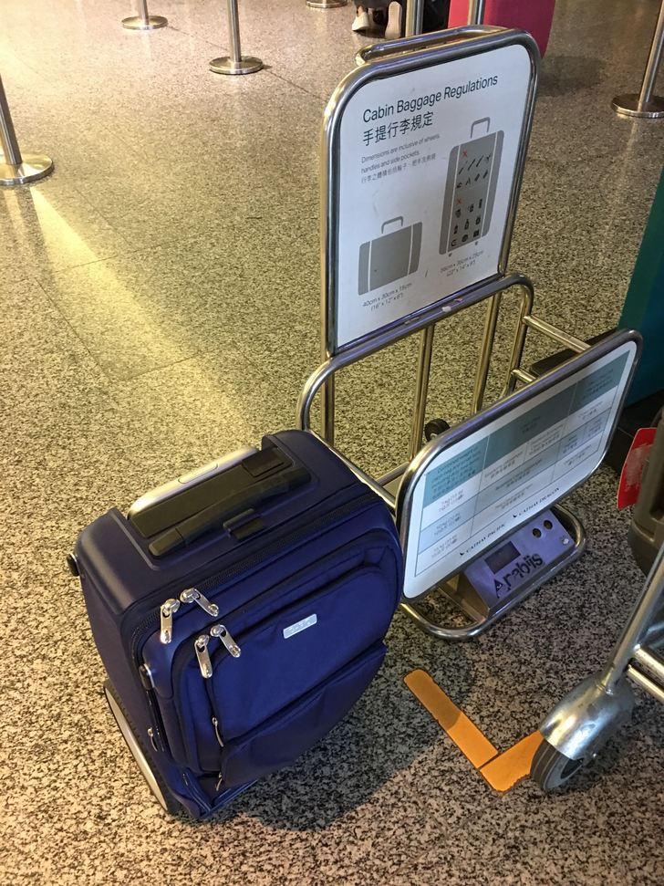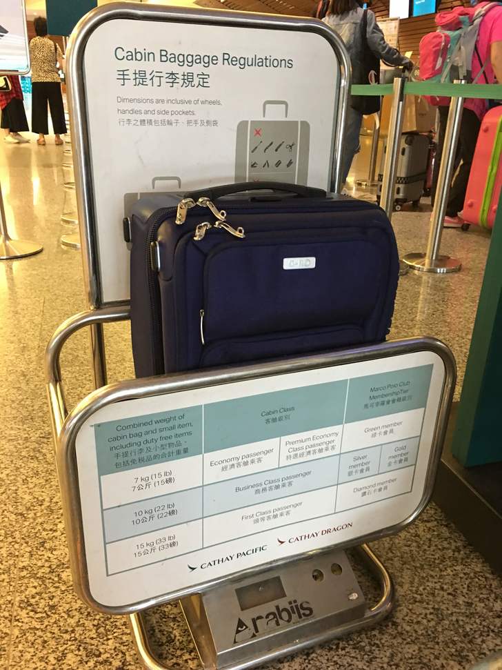 不論任何艙等,手提行李之體積包括輪子、把手及側袋, 長x 寬x 高不可超過56 x 36 x 23 公分(22 x 14 x 9 英吋),重量不可超過7公斤。 攜帶至客艙的手提行李必須放置於座椅下方或行李置物櫃。 旅客可於到報到櫃檯或登機門利用隨身行李測量器,檢查其所攜帶的手提行李是否符合體積之限制。