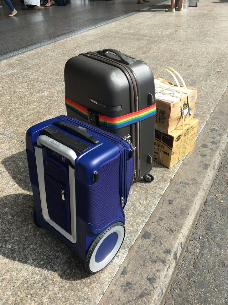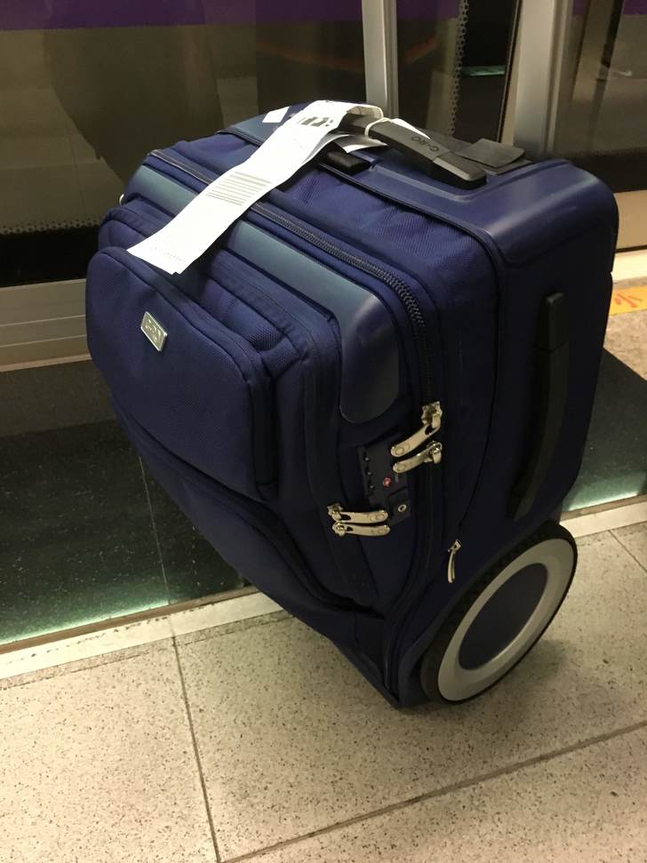 我在11/11-12從台北到高雄二天一夜行就是帶著G-RO登機箱輕鬆上路,此行先將G-RO登機箱騎機車到高鐵站,發現G-RO登機箱登機箱很容易就可以放在機車的腳踏板,然後在高鐵的樓梯測試G-RO登機箱的爬樓梯功能,發現很輕鬆就可以爬,然後上了高鐵也可以將G-RO登機箱放置在座位上方的置物櫃,整體而言,G-RO登機箱拖拉輕鬆又有多功能的置物拉鏈袋,也有外接的USB孔可以充手機或是其他裝置的電很方便。