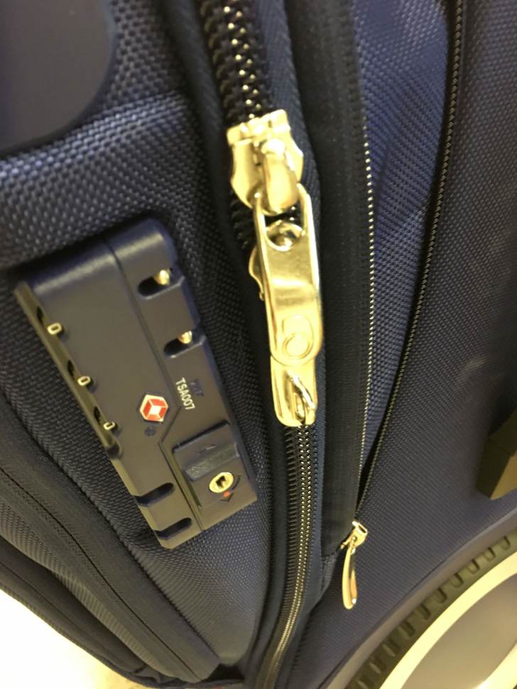 ▼G-RO登機箱拉鏈和鎖頭(附有海關鎖) 主要的行李空間和前置空間都可以上鎖