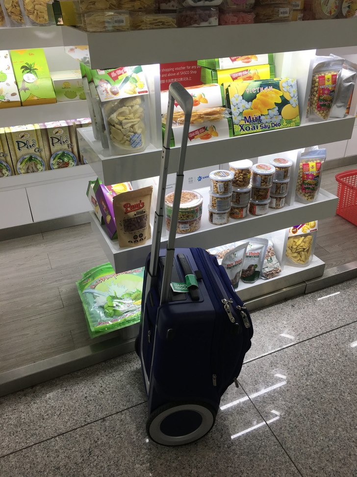 ▼G-RO登機箱在越南機場的FOOD COURT拍照
