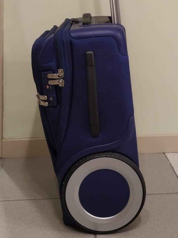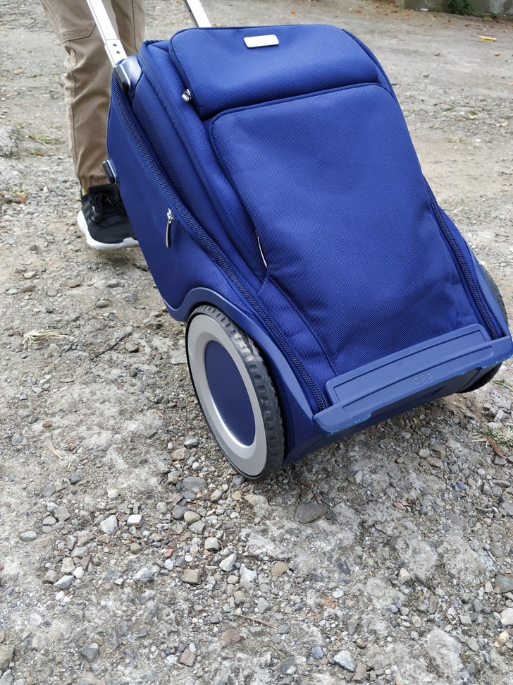 一般的登機箱(甚至絕大部分的行李箱),輪子的小小的。最大的目的,都是為了減少占用行李箱的體積。但帶來的缺點也很直接:小輪子的滾動性就是不好,特別是遇到特殊地形的時候,這一點,有去過歐洲的朋友一定能有深刻體會。歐洲有許多馬路,是鋪著石板的石板路的,推著小輪子的行李箱在上面走,真是會要人命,動不動就卡在石板縫中,就算沒有卡住,推在石板路上摳塿摳塿的,也著實讓人不爽快。