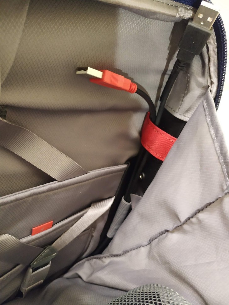 G-RO 登機箱集合了智能設計與充電 USB 接口,能串接行動電源為3C產品充電,頂部設有兩個USB端口,只要在行李箱內的USB另一頭接上行動電源,便可以不用拿出行動電源就可以為行動裝置充電。