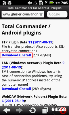 加入外掛程式。【外掛很強】也是 Total Commander 的一項特點。在瀏覽器中可以看到有三個外掛,分別是 FTP、LAN 跟 WebDAV。目前只有三個,不過應該會持續增加(吧?)。都是從網路存取檔案用的。這邊下載 【FTP 外掛】來試試看。