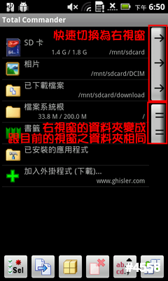 其實 Total Commander 真的是【雙視窗】啦,可以從【設定】中切換,只是手機太小,若是要直接開【真。雙視窗】模式的話,在 Pad 上使用應該會比較合適...╮(╯_╰)╭