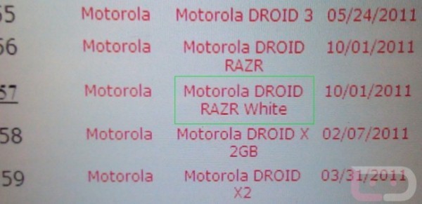 ↓Verizon 的系統也出現白色 Motorola DROID RAZR 的型號。