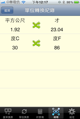 助理的頁籤裡面包含「匯率轉換記錄」、「單位轉換記錄」、「購物清單」三種資訊。
