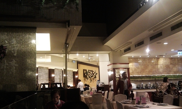 ▲ 座位一隅,左邊是假山造景,前方左是一個小包廂,更遠還有一個大廳。照片大概只照出了座位區很小的一角。
