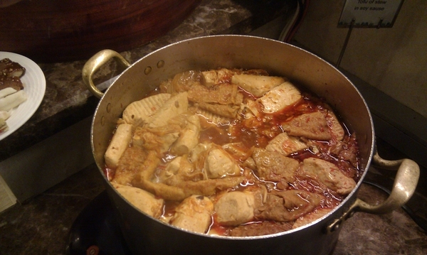 ▲ 中式食物區大推薦的臭豆腐,光看到這張照片寫到這邊我口水就又流了出來。它不是非常臭的那種臭豆腐,反而有一點像乳酪的那種發酵感覺,非常入味好吃,每次來都是吃最多的一品。就一個在台北豆腐聖地深坑與石碇長住過的我來說,蓮香齋的臭豆腐絕對不輸給王水成等深坑店家,也與石碇老街各有千秋,都值得大家特地來吃(同時也推薦石碇王家豆腐的豆漿,喝起來簡直就像液態的豆腐那麼濃。)