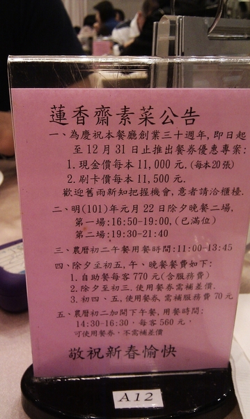 承標題,當然,也是我吃過最貴的素食餐廳…囧rz,台北還有像是「寬心園」與「鈺善閣」等我都還沒去過,有可能去過之後我的標題會更改,但在目前,至少現在,蓮香齋是我認為最好的素食歐式把飛(吃到飽)餐廳。也是我們家庭慶祝或是聚餐常去的地方,吃到什麼時候出什麼菜或是有沒有新菜式都知道了<( ̄︶ ̄)>