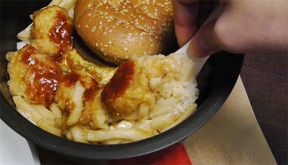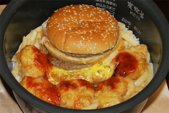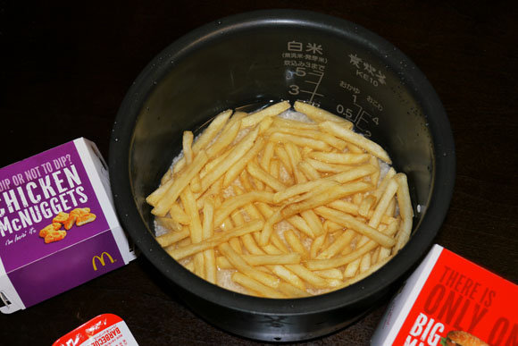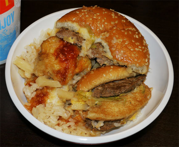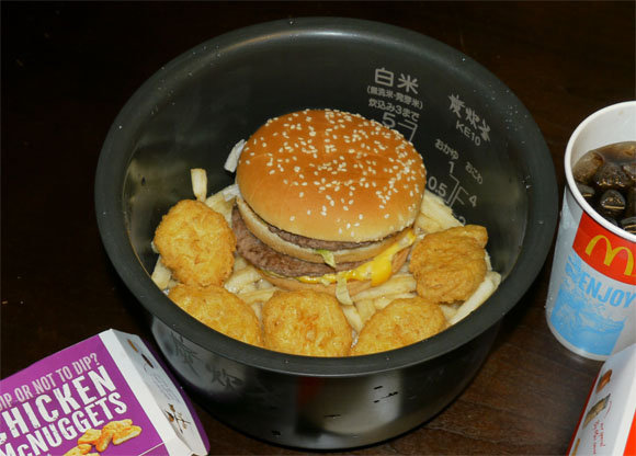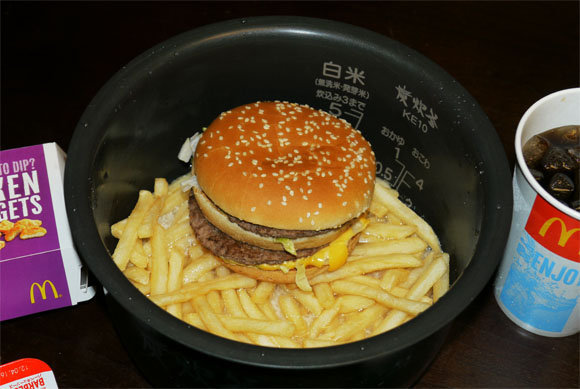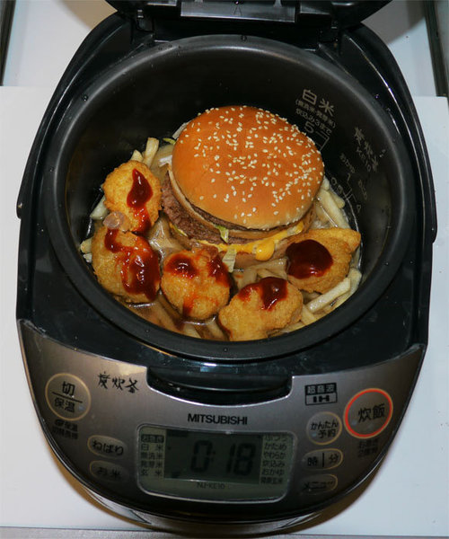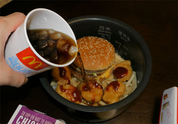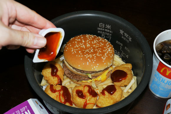 大家應該很常吃到牛丼、親子丼等料理,其實就是蓋飯的意思,不過你有吃過什麼特別的丼飯嘛?現在有超強的日本人要教你做麥當勞丼飯喔! ▼首先準備一下材料,有麥當勞餐、電鍋、米飯。 ▼接著把米洗一洗,加水,再把薯條撲在飯上。 ▼接著把漢堡放進去。 ▼然後把雞塊擺上去。 ▼放上醬料~ㄜ= ='' ▼把可樂倒進去。(⊙_⊙;) ▼然後就可以開始煮麥當勞丼飯了。 ▼將將~~完成囉! ▼看起來是可以吃,不過不知道味道怎麼樣? 資料來源 1 個人說讚 收藏 快速回應 引言回應 共 4 則回應 1 樓 · 激進份子 · 發表於 2011-12-09 17:07 · 檢舉 (⊙ˍ⊙)這好吃嗎? 讚 引言回應 2 樓 · 四驅犬 · 發表於 2011-12-09 17:32 · 檢舉 看到把可樂倒進去我就 ◢▆▅▄▃崩╰(〒皿〒)╯潰▃▄▅▇◣ 了 讚 引言回應 3 樓 · swpoker · 發表於 2011-12-09 17:58 · 檢舉 老實說 看完還真的肚子餓了勒 等下加點醬油 加點洋蔥 打顆蛋 應該更好吃阿 讚 引言回應 4 樓 · lhx886 · 發表於 2014-04-20 14:23 · 檢舉 對不起,此篇回應已被管理員刪除,內容只有管理員可見。