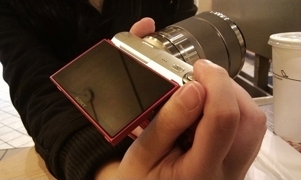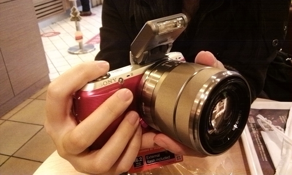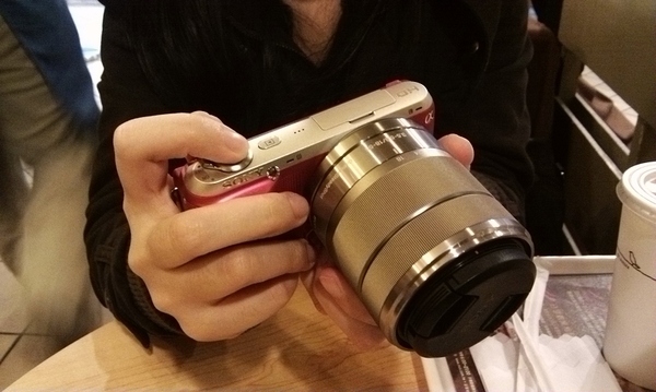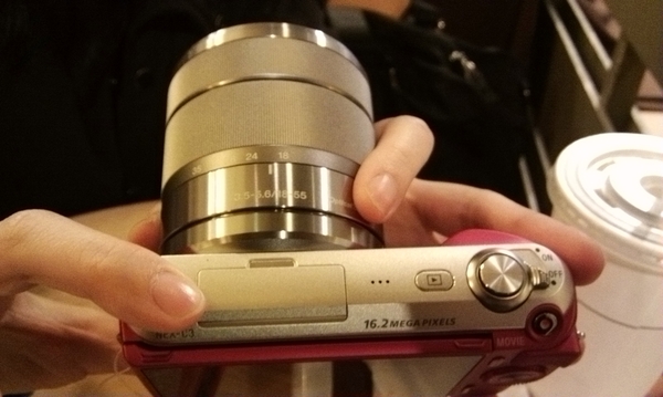 ▲ Nex c3 十分的小巧,女生來拿也沒什麼壓力。如果不說是 APS-C 片幅,可能很多人以為他只是一台淚單眼…(不!他是真正的單眼!)
