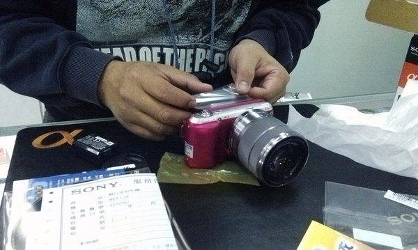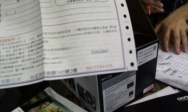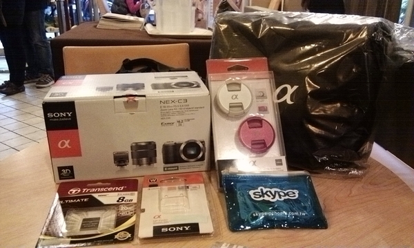 ▲ NexC3K,單鏡組合,送鏡頭蓋、保護貼、焦糖包(黑色那包東西,包裝沒拆),另外加購原廠電池,創見8G c10記憶卡,算起來19張小朋友加上幾張國父而已!