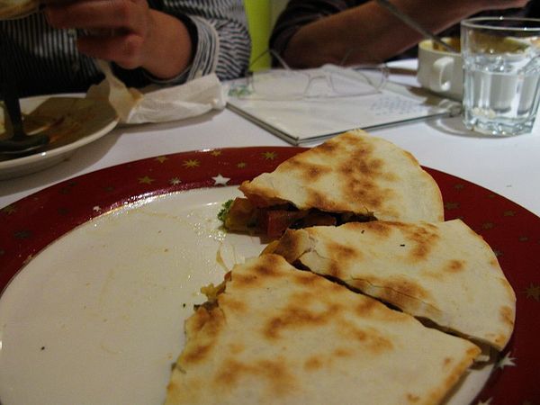 ▲ 青辣椒墨西哥烙餅,兩張餅中間夾上起士與蔬菜與青辣椒。是的,跟上面一樣的問題,蔬菜跟醬料還是很類似,多了個青辣椒…囧rz 雖然火侯、味道都十分好,但就是…嗯…,或許是因為我們一次點太多道的關係吧。內湖有一間美式餐廳叫「The Chips」也有類似的菜,那時吃了味道也是不錯,有機會再分享給大家。