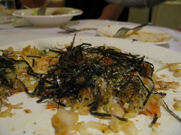 ▲ 蔬菜煎餅,這玩意是吃到一半我才想到要拍的,是芥末口味的,吃起來十分過癮,上頭灑上大量的海苔絲,裡頭有蔬菜、泡菜等等,值得點一盤大家分著吃,當然自己獨享也是可以,寫到這邊我都開始流口水鼻子冒汗了。